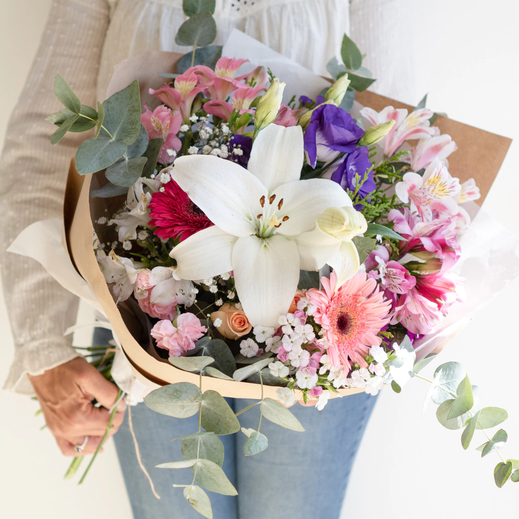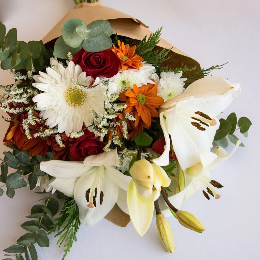 Ramo premium de flores de estación, incluye vara de lilium. Un regalo que no pasa desapercibido!
