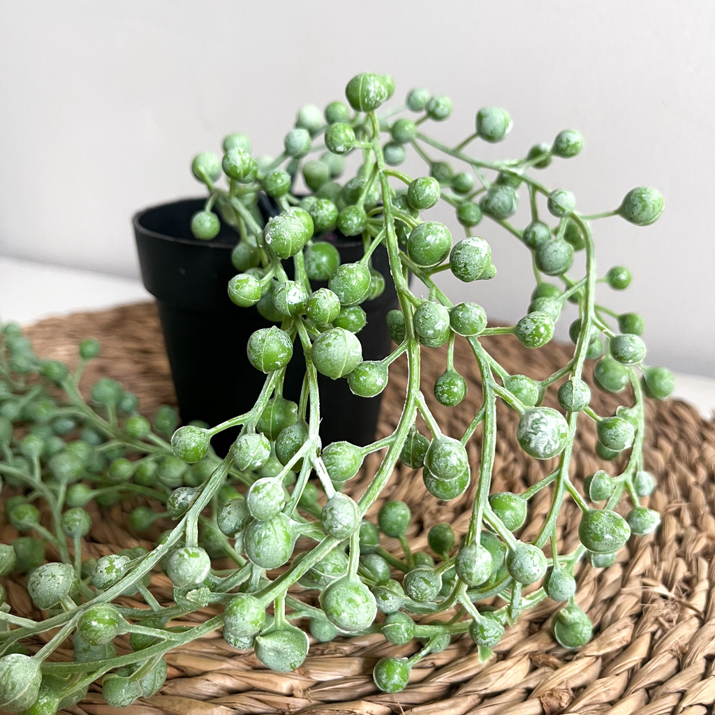 Vienen 2 modelos, tipo Rosario y tipo Sedum. Ambas vienen con maceta negra.